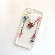 【1】手机壳是全透明包四边的软壳,手机壳表面会灌一层宝石胶把花材封起来,花材最终会相嵌在中央,所以不用担心会掉落问题。有些花朵比较厚或有重叠之处,有可能轻微凸起摸得到(例如:雏菊蕊/飞燕花蕊/满天星)