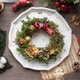 圣诞花圈也叫做“待降花圈”(Advent wreath),在拉丁文中有“来临”的意思,有迎接圣诞节到来的意味。花圈的常青树枝代表“生命”,圆形象征“永远”,代表“永恒的生命”。随时代演变,圣诞花圈装饰开始有了变化,松果、缎带、铃铛,甚至有了其他素材来制作,变成每逢圣诞节不可缺少的装饰之一,大家不妨在家中大门挂上圣诞花圈,可增添许多圣诞欢乐气氛。