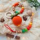 **Baby gift set included: orange (mandarine, tangerine) baby rattle, teething ring, pacifier clip holder + box**