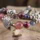 • **材料**:泰银、草莓晶 (11 毫米) 、堇青石 (7 毫米) 、粉红碧玺 (8.5 毫米) 、以及925纯银(圆珠 3.5毫米和4毫米)。