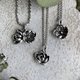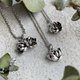 花絮轻语系列,每一瓣、每一叶都是由钻研雕刻多年的艺术家旷日费时对花卉的每一个微小细节精雕细琢,再选用进口高品质银粒铸造成形,并以精细的硫化染黑及手工镜面抛光工序将作品慢慢琢磨出光芒。