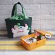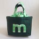 -帆布包口用与字母相同的绿白格子布作束口包设计,放入或拿出便当盒也很方便。