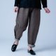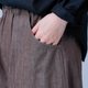 因为有适度的锥形剪裁,反折搭配应该会很可爱。布料也很扎实,感觉穿一整天也不会变形。裤长在脚背处有一点堆叠感,腰部尺寸刚好。