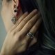 这款耳环由“宇宙合作社”提供天然蓝线石与黑曜石原矿,并与金属风格品牌“矿叁 good things 3”联手推出。以__不锈钢结构件__为骨架,搭配__蓝线石耳饰+黑曜石耳骨夹__的非对称设计,展现静默坚定、极简冷感的独立风格。