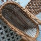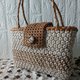 以手工编织花结点缀整体造型的提篮包作品。