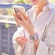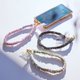 可以当作手提吊带使用,也可以挂在包包上。 将较粗的欧根纱扎实编织,构造坚固。 不会刮伤手机,使用安心!