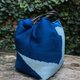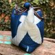 蓝晒枫叶杯袋 可放柴烧杯ㄧ个,小杯可放3~4个 蓝晒图案以枫叶为主,每次制作都不会一模一样 尺寸:高9.5cm*宽6cm*侧边7cm