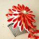 Using the old cloth (kimono fabric) of bright orange, it is a hair ornaments that fall is attached to the double sword knob of large flower.