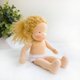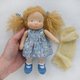 这款小巧的 Waldorf 口袋娃娃高 7 英寸(18 厘米),是专为小手设计的完美尺寸。她采用环保材质制成:身体使用 De Witte Engel 认证有机棉针织布,头发使用马海毛纱线,眼睛和嘴巴则以绣线绣制。她的身体和头部填充 100% 有机羊毛。脸颊的颜色是使用蜂蜡蜡笔绘制。