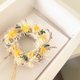 **【花材】**花圈基底、小菊花、白色蓬莱松、森绿雪松、金色临花、卡斯比亚、日本和纸