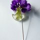 Purple syringa flowers unisex brooch is made in the form of a vase with flowers.