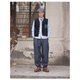 ◆多口袋不对称设计,胸口为细条纹灯芯绒拼接