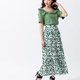 舒适棉质蛋糕裙,搭配绿叶质地印花,活泼有型