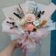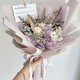 .花材包含永生玫瑰、索拉玫瑰、索拉太阳花、兔尾草、蓬莱松、卡斯比亚、罗丹斯、小满天星、尤佳利…等等。