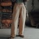 卡其色 漢麻棉復古休閒顯瘦蘿卜褲 通勤百搭平腰長褲 - 女装长裤 - 棉.麻 卡其色