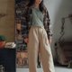 卡其色 漢麻棉復古休閒顯瘦蘿卜褲 通勤百搭平腰長褲