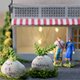 定制化中景观 - 压克力外盒约15厘米的景观模型,包含1个有半透明窗户的建筑、2个人物摆饰