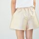 非常美的香槟金色挺布做成的宽管短裤 穿起来很轻松 简单又很有气质 加了里布很舒适 有挺度的宽裤管版型非常修饰腿型 让腿看起来瘦瘦的 非常真心的大推荐这次新单品