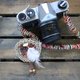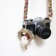 You can carry a lens cap in this holder made of silk thread and hemp. I'm inspired by the taste of dreamcatcher, so I decorated the holder with some feathers, leather cords and wooden beads to finish it in folklore mood.