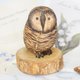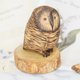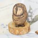 在繁忙、生活紧绷的都市里,你否想去到一片森林呼吸新鲜舒适的空气,沐浴在大自然的天然芬多精中,疗愈猫头鹰就为此时此刻的你诞生,艺术家郭国庆每件艺术品主体皆取自于大自然,木雕猫头鹰是用台湾肖楠雕刻而成,不上漆皆用烧色方式上色,保留着最天然的香气,让你能循着木雕芬芳完全像沉浸在森林里。