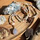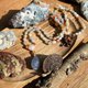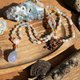 一串像蛋白石一般通透的天蓝,有些带有小水玉柄,也有小彩色和白色点缀。全也是来自沙漠的小石头。