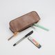 “切线派” 手染的产品,目前使用的是美国进口的Fiebing's皮革酒精染料。为了染色均匀自然,开始我们需要用水把皮面打湿,然后用海绵一遍一遍的涂上染料,由浅到深,直到达到我们想要的颜色为止。干了以后还要上一层固色剂,增加色牢度。最后还要用清水在皮的表面涂抹,擦去表面存在的灰尘并让颜色更加均匀。