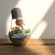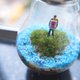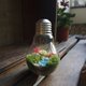 将钨丝灯泡(5cm阔 x 10cm高)拆解,再经由1.5cm直径的入口放入苔藓及装饰物创作场景。