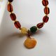 //血珀+蜜蜡锁+金珀隔珠+碧玉雕花桶珠+蜜蜡南瓜珠 //血珀(直径9mm左右长12mm左右) //蜜蜡锁(16mm*15mm*5mm)
