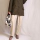 这件西装外套以经典的英伦绅士风格为灵感,选用混花绿鱼骨纹利里斯羊毛粗制成。整体版型采用近年流行的宽肩设计,自然修饰肩线,营造出具有份量感的造型比例。经典的翻领门襟,单排扣穿脱,衣身两侧缝有掀盖式口袋,后中衣摆开衩则让行动更为自在流畅,袖口上扣的细节也为整体增添层次。整体偏宽松的剪裁能轻松内搭薄毛衣或发热衣,保暖且不显臃肿。这是一件能随意穿出绅士气质的外套,无论搭配薄毛衣、衬衫、长裤,都能轻松驾驭各种场合。