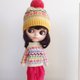 Knitted hat for Blythe doll, made in jacquard technique.
