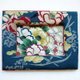 Plump and soft Kinsha crepe of camellia and plum pattern in closet color. Frame and the middle and back is one point finished with silk old cloth of camellia, chrysanthemum, plum, maple pattern in burgundy.