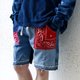 - 于牛仔短裤之上拼上不同深浅的牛仔布及Bandana,备有红色及蓝色Bandana选择。 产地/制造方式 香港/美国