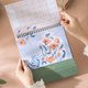 - 尺寸14.5x19.5cm的2020年插画桌历,封面及底座烫雾金点缀,搭配古铜金双线圈,提升整体质感,内页使用附手感的奇俪纸,书写翻阅时充满温度,六日及例假日均用不同颜色标注,方便行程安排,附赠桌历专属信封及明信片2张,送礼包装更有心意。