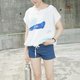 心里的海 / 月亮波浪白色亚麻透气抽绳绑带小v领上衣