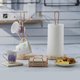 每一块风洞石,因表面有许多天然孔洞而闻名,所以主张不填补坑洞,呈现最原始的纹理,又以米黄色调的洞石居多,让人感到温和,而且还有一种强烈的文化和历史韵味,致常被用于世界各地建筑物外墙,于是我们采用了黄色洞石,把它缩小到可以置放在家里的厨房、客厅、书房亦或卧室的桌上,随时随地都可欣赏,再搭配玫瑰金色温柔的线条,不论放置何处,都别有一番低调的奢华感。