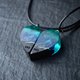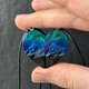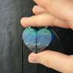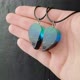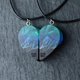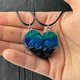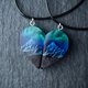 手工制作的配对心形吊坠,采用黑色鹅耳枥木和环氧树脂制成,内有雪山。