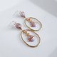 这款别致的耳饰,以引人注目的椭圆形坠饰,结合宛如王冠的土星造型,并在上缘缀饰着与土星坠饰色调呼应的、带有大理石般美丽纹理的淡紫色捷克雾面珠。