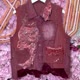 OTT独一无二•Unique日系丝绒刺绣珠绣手勾蕾丝擦洗牛仔背心外套