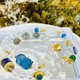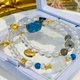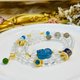 海蓝宝貔貅5.6mmx9.6mmx9.2mm、蓝月光貔貅13mmx9.7mmx9mm、白水晶6mm、蓝磷灰5mm、灰月光8.5mmx6.5mm、纯银凿金人鱼尾碧玉配件、纯银凿金蓝磷灰配件7.2mmx6.7mm、纯银凿金滴油宝蓝心经护平安配件10mmxm、纯银凿金福字元宝