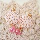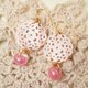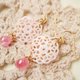 It is a pierced earring that combines a pink shell cut with a delicate lace motif and lampwork beads (dragonfly balls) made in the United States ^ ^