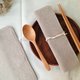 尺寸刚好的餐具袋,简单大方,有棉麻温暖的触感与立体织线;餐袋正面可直接当餐垫,可选择搭配榉木筷匙餐具组。