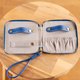 这款饰品收纳包采用别致的灰褐色,搭配沉静的蓝色作为点缀,展现双色拼接的设计。