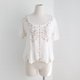 复古春夏欧洲田园风可爱花朵刺绣特殊版型短袖米白色古着衬衫-T094