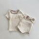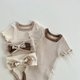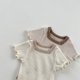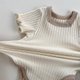 材质通过韩国政府品质验证 (KC),95% cotton,5% span,罗纹材质手感柔软又极度富有弹性(图三),配上拼色小方领木耳边设计,十分讨喜。