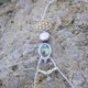 这款波希米亚海滩身体链是精美的编织饰品。它采用了具有魔法能量的拉长石,据信能增强直觉、抵御负能量,并激发内在的魔法力量。湿婆眼贝壳则被认为能带来保护、好运和灵性洞察。这款身体饰品点缀着银色金属生命之花坠饰,象征着创造与和谐,搭配着贝壳碎片、银色珠子和螺旋图案,散发出浓厚的海岸波希米亚风格。