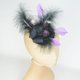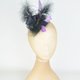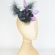淡紫色、紫色和黑色羽毛层叠在底座上,辅以黑色宝石、西纳梅花和薄纱面纱。