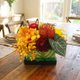 作品特色:选用进口高阶拟真花材,较不易沾染灰尘,以特级拟真花材手工制作而成的植栽花饰,附加扩香试管,环境美化同时带有芬芳的香气。