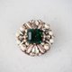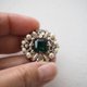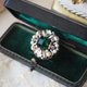 复古风格胸针。采用祖母绿玻璃水钻、玻璃珍珠和珠子手工制作。