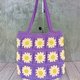 白色雏菊编织包 包身为紫色,颜色非常漂亮喔 包包尺寸 31厘米*33厘米 内有衬里