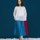 - 这是一件一字领上衣,领口两边各有三角拼布。